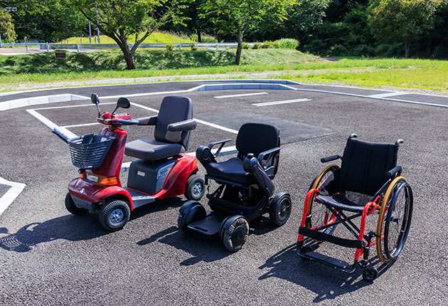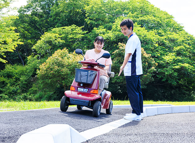 加えて、自動車運転をすぐに再開できない方にはシニアカーや電動車いす、自転車などの練習を行えるためのコースも保有しており、傷病後に地域の移動が困難にならないよう地域の移動支援体制も整えています。